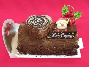 ・ブッシュ・ド・ノエル ・(約16㎝×約8㎝) 4,000円(税込) フレッシュな生クリームとガーナ産チョコレートを使用した、期間限定のチョコクリームです。フルーツが苦手な方、チョコ好きな方におススメです! エアインチョコのサンタさん・クリスマスプレートもすべて美味しく食べることができます。