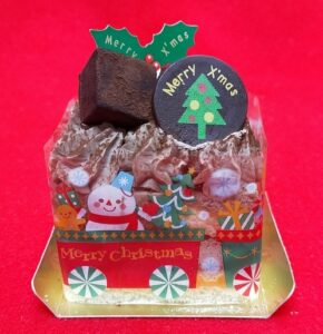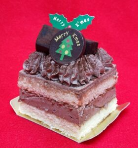 ・Xmas生チョコショートケーキ(税込)680円 ※12/20~販売 国産小麦粉を使用したふわふわスポンジ生地に特製チョコクリームと、オリジナル生チョコ・Xmasチョコプレートを飾りました